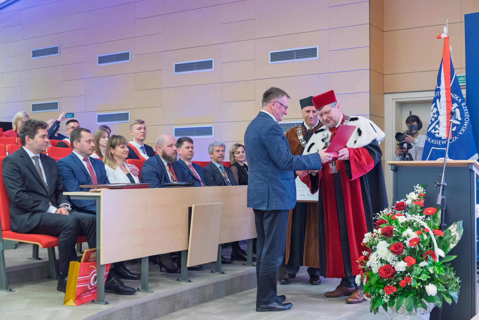 W uroczystości udział wzięli: prezydent miasta Stalowa Wola Lucjusz Nadbereżny wraz z zastępcami Moniką Pachacz-Świderską i Tomaszem Miśko, starosta Stalowowolski Janusz Zarzeczny, starostą Sandomierskim Marcin Piwnik, radni Sejmiku Wojewódzkiego, radni Miasta Stalowa Wola, radni Powiatu Stalowowolskiego i przedstawiciele jednostek samorządowych i administracyjnych z województwa podkarpackiego. Wydarzenie uświetnili swoją obecnością również przedstawiciele uczelni współpracujących z Politechniką Rzeszowską: rektor Politechniki Lubelskiej prof. Zbigniew Pater, prorektor Akademii Górniczko- Hutniczej w Krakowie prof. Rafał Dańko wraz z dziekanem Wydziału Odlewnictwa prof. Marcinem Górnym, prorektor University of Defence Brno ppłk. prof. Zdeněk Pokornŷ, dziekan Wydziału Mechanicznego Technologicznego Politechniki Śląskiej prof. Marcin Adamiak, przedstawiciele przedsiębiorstw: dyrektor Wojskowego Instytutu Techniki Pancernej i Samochodowej płk Michał Ceremuga, zastępca dowódcy Brygady Artylerii w Nowej Dębie płk Paweł Jędryczka, Barbara Cena, dyrektor Finansowy Huty Stalowa Wola S.A. Najliczniejszą grupę uczestników stanowili nauczyciele akademiccy, pracownicy i studenci Politechniki Rzeszowskiej oraz Wydziału Mechaniczno-Technologicznego.