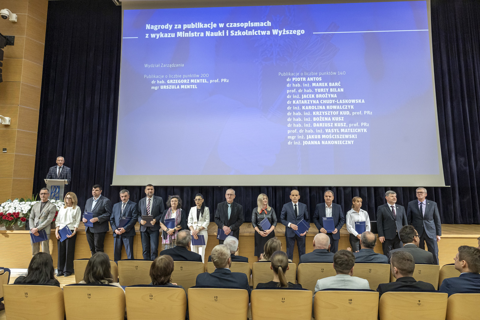 Nagrodami za publikacje o liczbie punktów 140 zostali wyróżnieni: prof. dr hab. inż. Dorota Antos, dr inż. Paweł Błoniarz, dr inż. Roman Bochenek, dr hab. Aleksandra Bocian, prof. PRz, dr inż. Katarzyna Bulanda, dr hab. inż. Łukasz Byczyński, prof. PRz, prof. dr hab. inż. Paweł Chmielarz, dr inż. Elżbieta Chmiel-Szukiewicz, dr inż. Marcin Chutkowski, dr Ewa Ciszkowicz, dr inż. Bartłomiej Filip, dr inż. Dorota Głowacz-Czerwonka, prof. PRz, dr inż. Karol Hęclik, dr inż. Konrad Hus, dr inż. Michał Kołodziej,dr inż. Małgorzata Kosińska-Pezda, dr inż. Anna Kuźniar, prof. PRz, prof. dr hab. Jaroslav Legáth, prof. dr hab. inż. Jacek Lubczak, dr inż. Andrzej Łyskowski, mgr inż. Anna Miłoś, dr Maria Misiorek, dr hab. inż. Beata Mossety-Leszczak, prof. PRz, dr hab. Joanna Nizioł, prof. PRz, prof. dr hab. inż. Mariusz Oleksy, dr hab. Barbara Pilch-Pitera, prof. PRz, dr inż. Izabela Poplewska, dr inż. Grzegorz Poplewski, prof. dr hab. inż. Tomasz Ruman, dr inż. Katarzyna Rydel-Ciszek, prof. dr hab. inż. Andrzej Sobkowiak, dr hab. Łukasz Uram, prof. PRz, dr Elżbieta Woźnicka, dr hab. inż. Izabela Zaborniak, prof. PRz, dr inż. Lidia Zapała, dr inż. Magdalena Zaręba, prof. dr hab. inż. Iwona Zarzyka.