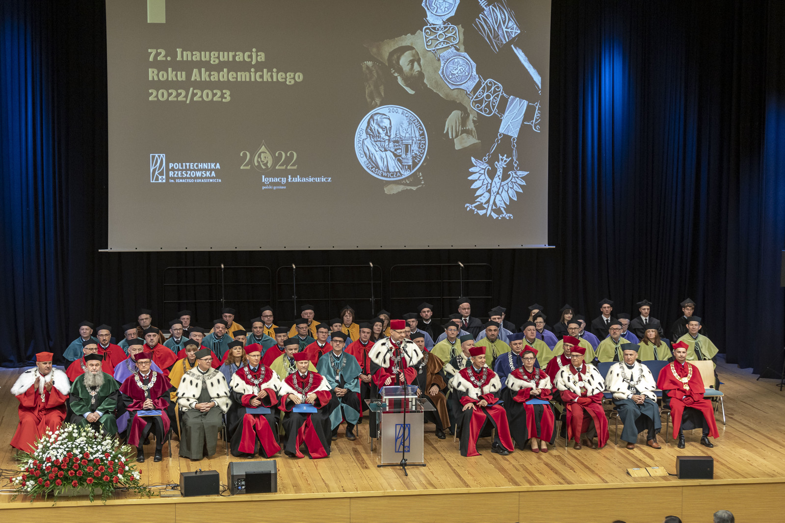 „Droga Młodzieży Akademicka, Szanowni Zebrani zgodnie z tradycją ogłaszam rok akademicki 2022/2023 na Politechnice Rzeszowskiej za rozpoczęty” – powiedział JM Rektor, uderzając trzy razy berłem, a Chór Akademicki odśpiewał Gaude Mater Polonia. Wykład inauguracyjny „Trendy transformacji energetycznej pod presją współczesnych wyzwań” wygłosił dr hab. Mariusz Ruszel, prof. PRz.
