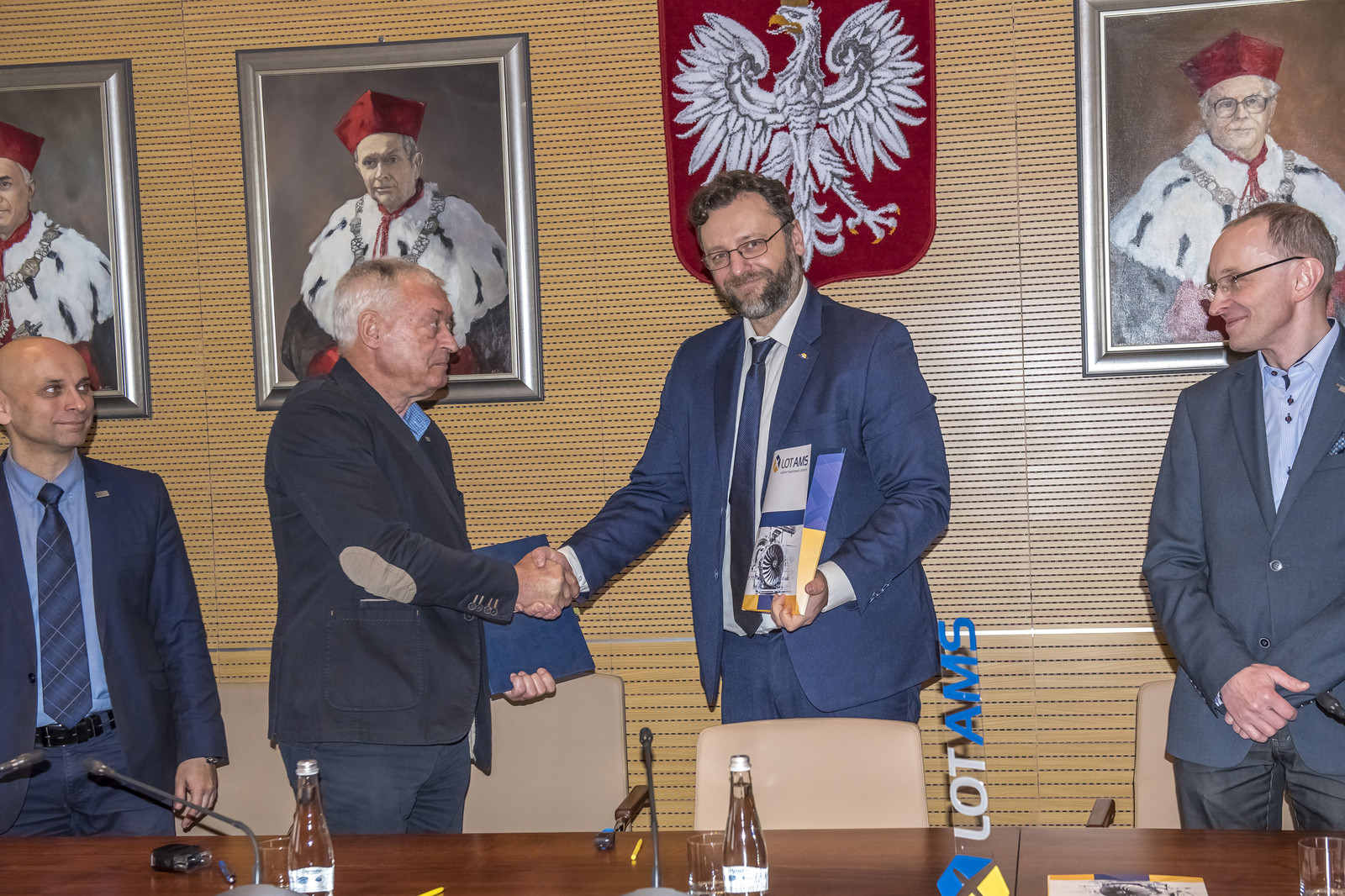 Umowę podpisali prof. dr hab. inż. Tadeusz Markowski, Rektor Politechniki Rzeszowskiej i Marcin Kwietniak, Dyrektor Biura Marketingu w LOT Aircraft Maintenance Services Sp. z o.o.