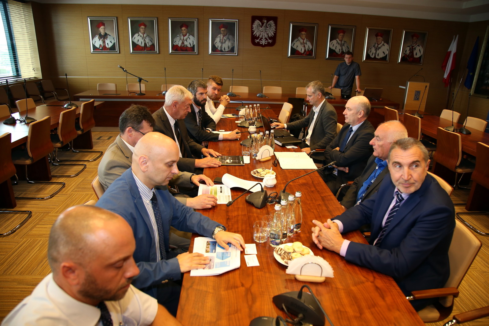 11 lipca br. w Sali Senatu PRz odbyło się spotkanie władz uczelni z przedstawicielami firmy BOMBARDIER Aerospace. Dotyczyło przyszłej współpracy naukowo-badawczej w dziedzinie innowacyjnych technologii. Prof. dr hab. inż. Tadeusz Markowski, rektor PRz, prof. dr hab. inż. Grzegorz Budzik, prorektor ds. nauki, oraz dr hab. inż. Mariusz Oleksy, prof. PRz, prorektor ds. rozwoju i kontaktów z gospodarką, rozmawiali na temat współpracy z Michaelem Curranem, dyrektorem w Aerostructures and Engineering Services i Januszem Kućminem, generalnym przedstawicielem Bombardiera na Polskę. Możliwość kooperacji miałaby dotyczyć technologii stosowanej w lotnictwie, m.in. kompozytów, szybkiego prototypowania oraz symulacji konstrukcji lotniczych wspomaganych komputerowo.