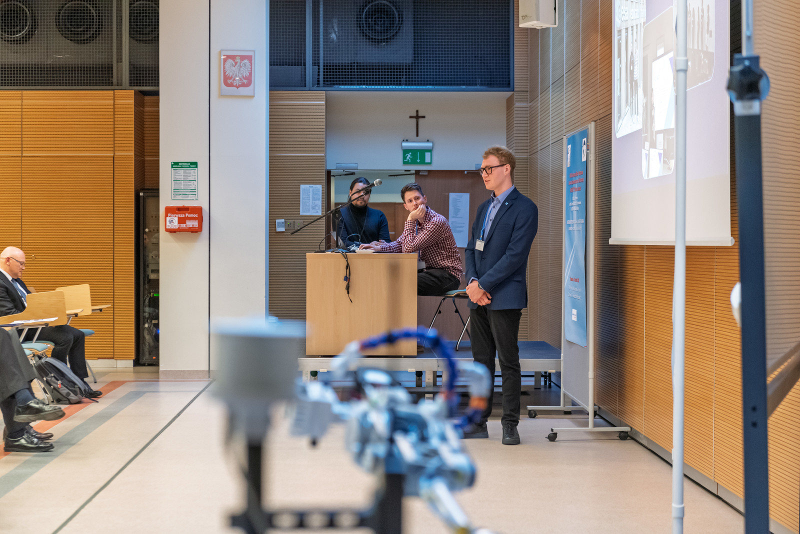 W wydarzeniu wzięli również udział studenci z kół naukowych Politechniki Rzeszowskiej, Politechniki Warszawskiej oraz Akademii Górniczo-Hutniczej w Krakowie. Naszą uczelnię reprezentowały dwa koła. Studenci Koła Naukowego EUROAVIA przedstawili plany na 2025 r. dotyczące udziału w SAE Aero Design 2025 EAST, natomiast studenci Koła Naukowego Inżynierii Kosmicznej zaprezentowali swoje osiągnięcia w zakresie misji kosmicznej w Space Challenge. Koło Naukowe AeroDesign z Politechniki Warszawskiej przedstawiło projekt dotyczący systemu rozpoznawania obrazu oraz lotu autonomicznego w samolocie Pterodaktyl. Technologie kosmiczne to temat wystąpienia członków Koła Naukowego AGH Space Systems.